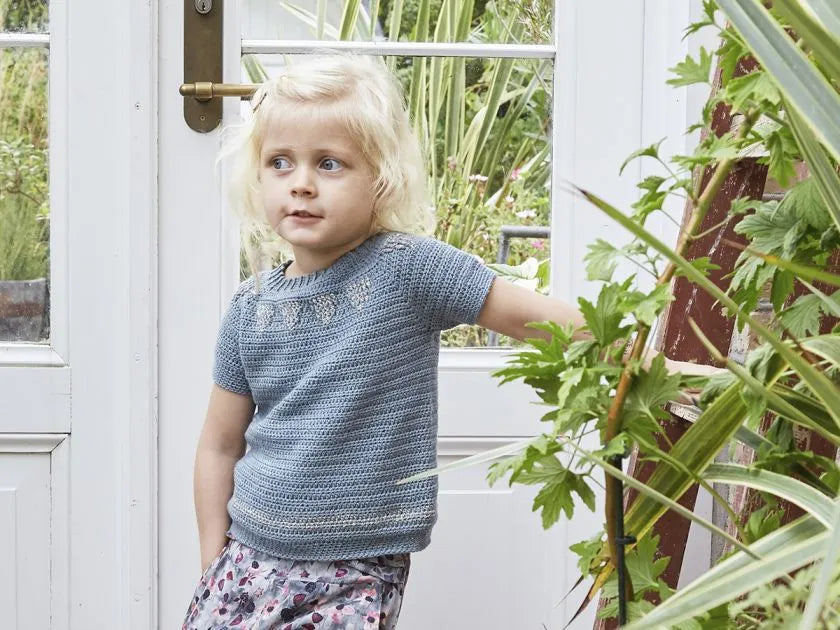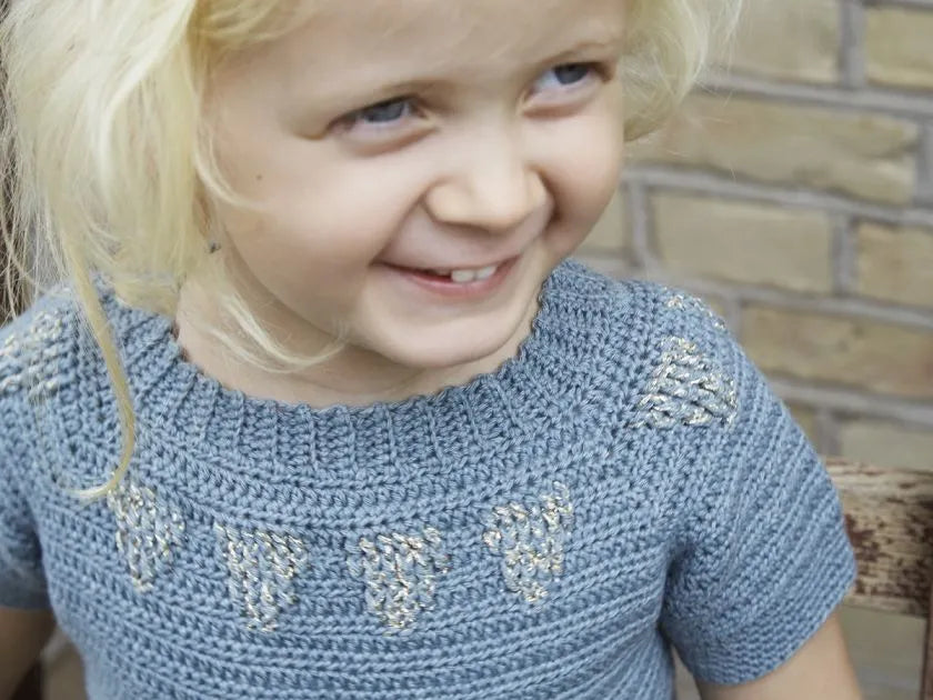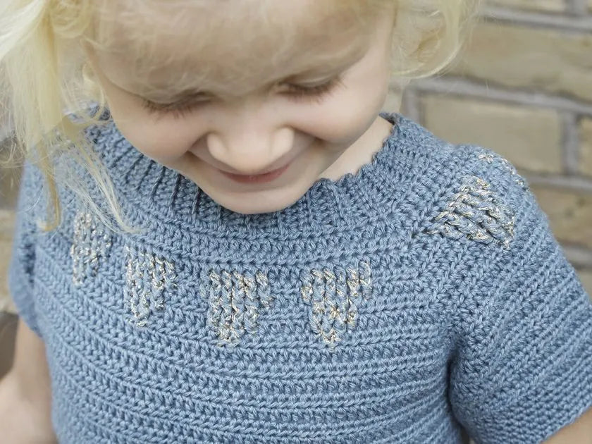 Dette design er skabt med inspiration fra eventyrets verden og designerens døtres kærlighed til glimmer og prinsesser. Beata er en fin sommer-t-shirt med guld og glimmer nok til at gøre enhver prinsesse tilfreds.