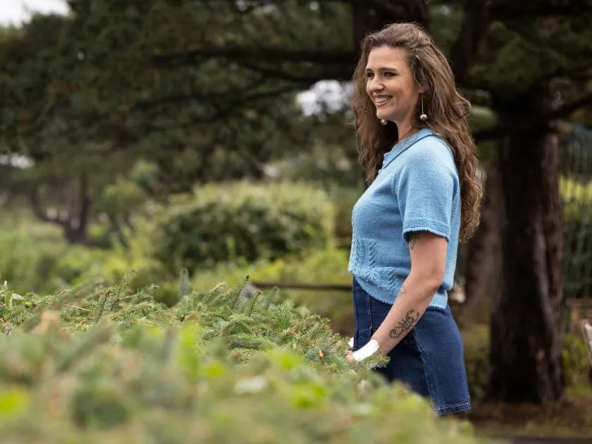 Blue Hawaii er inspireret af retro resort-tøj og dagdrømme om troperne. Det er luftig sommerstrik med en legende struktur og smukke detaljer. Den kortærmede polo har en afslappet pasform, en fin, retstrikket krave langs V-udskæringen og et rytmisk hulmønsterpanel, der tilføjer et strejf af vintagecharme.