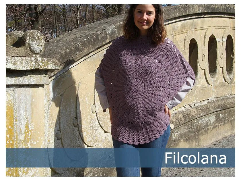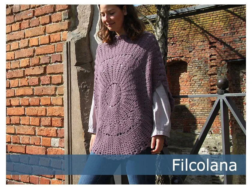 Mønsteret kunne ligeså godt være til en lysedug, men her er det i stedet blevet til en skøn poncho.