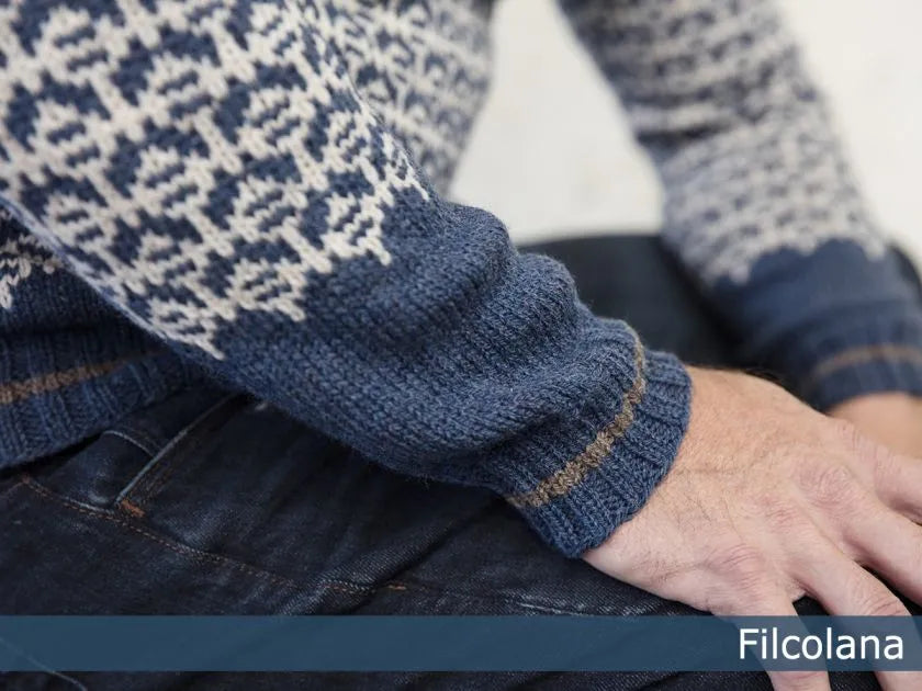 Flint er en klassisk herresweater med mønsterstrik i et nyt, nordisk design. Modellen er på én gang helt enkelt og klassisk og samtidig meget nutidigt i farver og pasform.